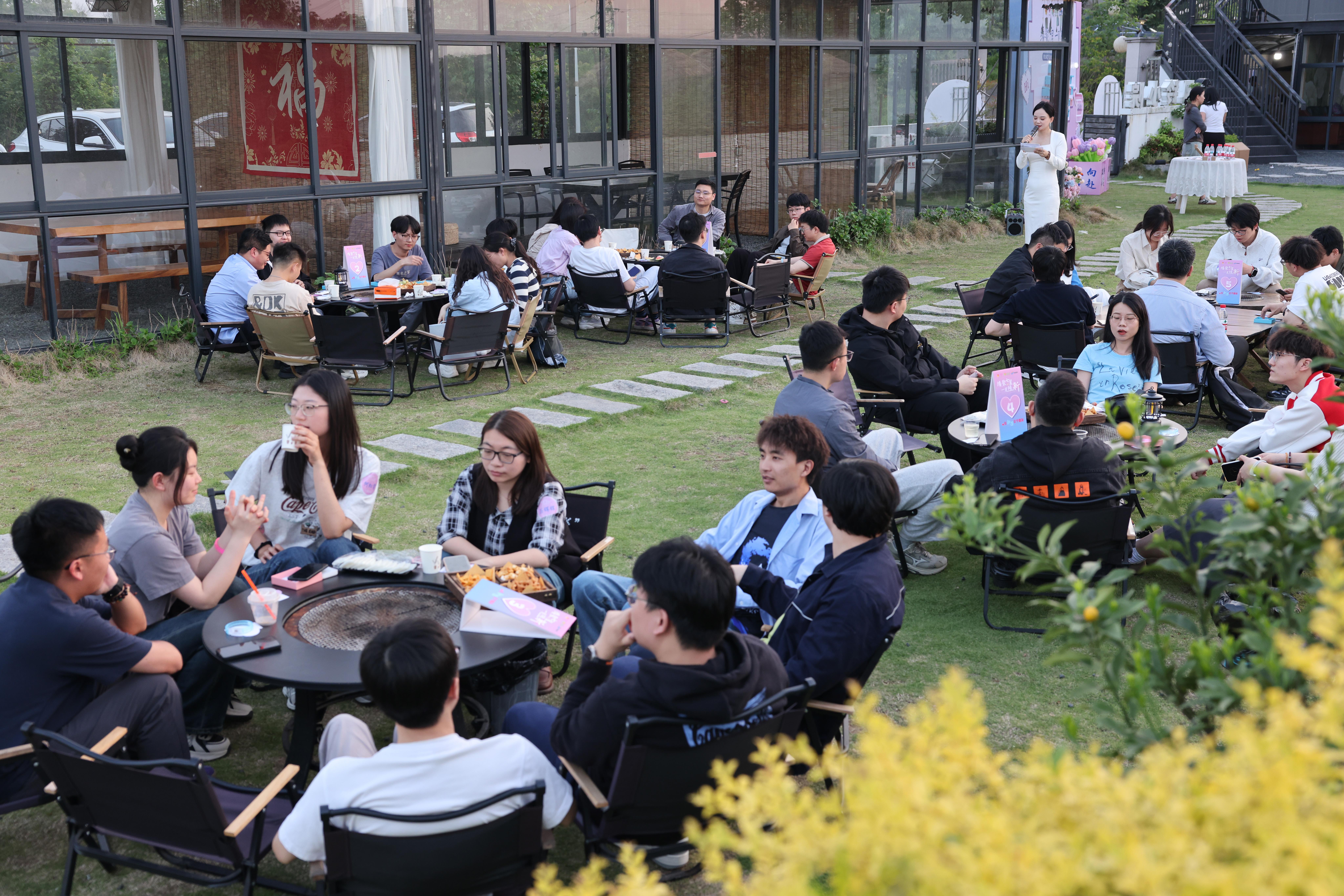 On the evening of April 18, as the city lights slowly flickered to life, the Wind Bell Courtyard in Xinchang transformed into a dreamy setting for a starlit encounter. The youth event, themed “Meet at Qixing, Fall at First Sight” co-hosted by the Youth League Committee and Federation of Trade Unions of Qixing subdistrict and NHU, brought together 40 young people for a night of connection, laughter, and possibility.